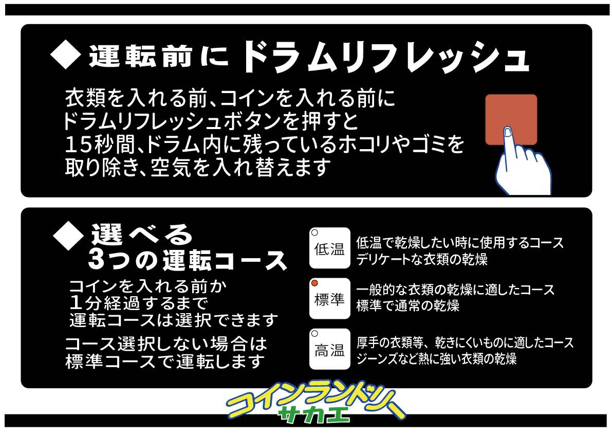 標準・少量コース、アタック洗剤コース、羽毛ふとん専用コース等、お好みでご利用できます
